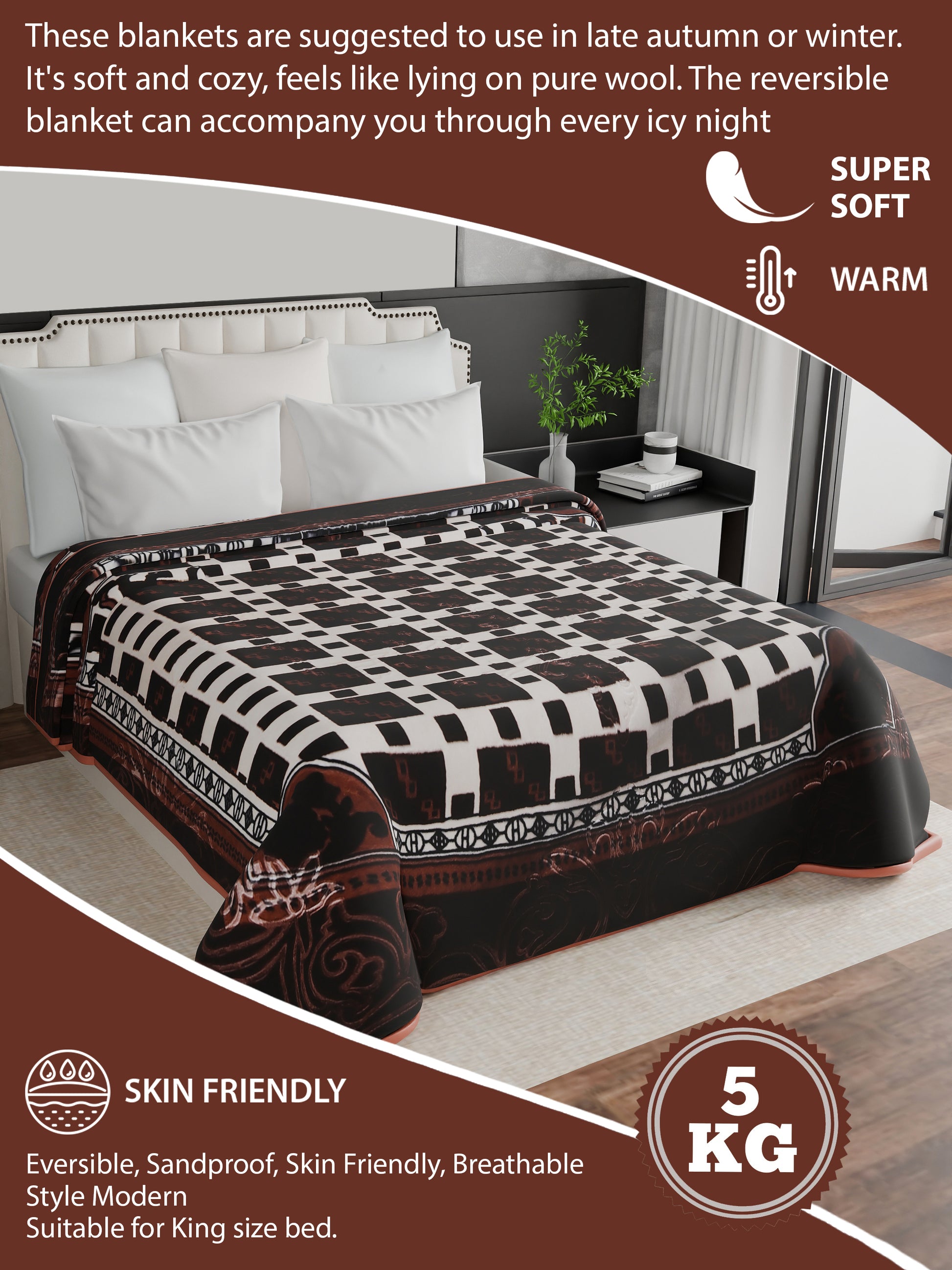 Wrap yourself in luxury and warmth with the Magical 5 kg Heavy Blanket, specially designed for late autumn and winter nights. Made with premium-quality fabric, it feels as soft and cozy as pure wool, keeping you comfortable through every icy night.